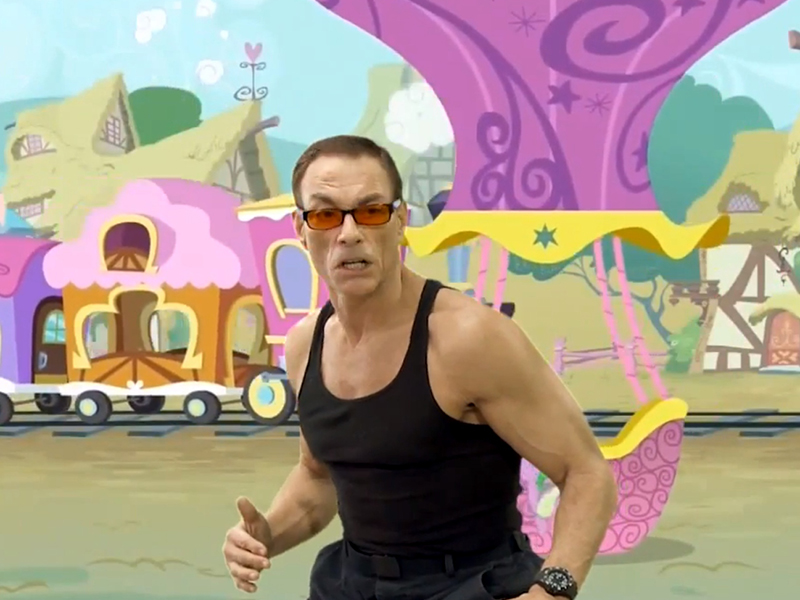 Жан-Клод Ван Дамм придумал оригинальный способ напомнить о себе. Звезда боевиков записал серию роликов на зеленом экране с мультипликационными персонажами, которых он разит своими знаменитыми движениями и фразами. То он спускается на воздушном шаре, то бьет ногой дерево, то расстреливает из пулемета несчастных пони.