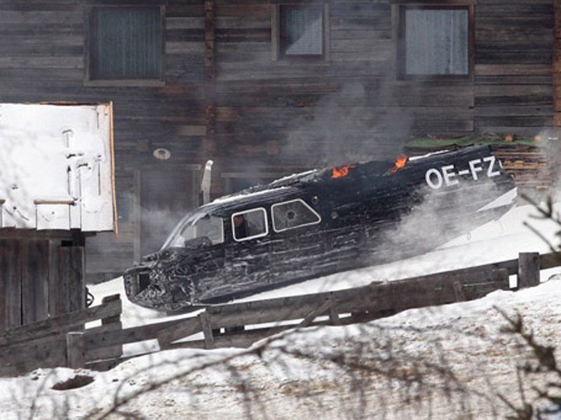 Кроме того, во время съемок в Альпах агенту 007 пришлось пилотировать самолет, который по сюжету врезается в амбар в ходе преследования машины своего соперника и превращает автомобиль в горящие обломки. Также специально для фильма были созданы десять машин Aston Martin DB10 с катапультируемыми сиденьями. Семь из них были уничтожены в ходе съемок.