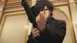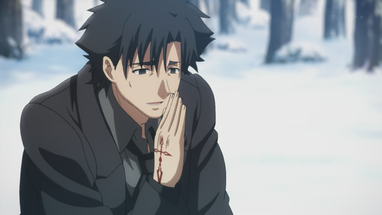 Сюжет пересказывать не буду, это долго и он здесь, уж простите меня, не главное. А вот по персонажам пройдусь. Во многих описаниях к фильму, главным героем называют товарища по имени Кирицугу Эмия. Это такой киллер, который за деньги убивает именно магов. Ну, то есть убивал, пока семья Эмия не решила принять его в игру. Женили на девочке, и хлоп – он часть семьи, и теперь может запросто сражаться за Грааль. А как он это будет делать – совсем уже и не важно, правда же? Раз уж я так увлеклась описанием персонажа, давайте тогда посмотрим на любителя огнестрельного оружия на картинках, и я перейду, собственно, к тому, ради чего я вообще вспомнила об одном из толпы трудящихся мастеров.