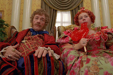 Просветы есть только в актерской игре, да и то местами. Конечно, артисты старой школы даже в этом бреде смотрелись неплохо, но все равно было заметно, что как-то им весь этот балаган не по душе. Лия Ахеджакова уже давно во всех фильмах играет старенькую Лию Ахеджакову, что, впрочем, вполне гармонировало с образом Бабы Яги, желчной и ворчливой бабки. Гафт, играющий Свет мой зеркальце, тоже не очень естественно смотрится с попытками имитации одесского говора. Куравлев в роли барина – постаревший Афоня. Словом, великие артисты, недоуменно оглядевшись и не осознав, что, собственно, требуется от их персонажа, сыграли свои самые удачные амплуа.
