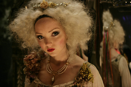 Валентина (Лили Коул) прекрасна. На 16 не выглядит ни с единого ракурса, невинностью не пахнет, охотно дерется, смолит чинарики и лелеет обывательские мечты об "идеальном доме и ребеночке" etc. Вместе с отцом, спивающимся от тоски и страха, ассистентами отца – карликом (Верн Тройер) и влюбленным в нее пареньком Антоном (Эндрю Гарфильд), девица колесит в фургоне с древними декорациями, весьма смахивающем на уменьшенную копию "Ходячего замка". Естественно – ни сном не духом о грозящей ей участи. И вот на пути у труппы "Воображариума" появляется таинственный незнакомец Тони.