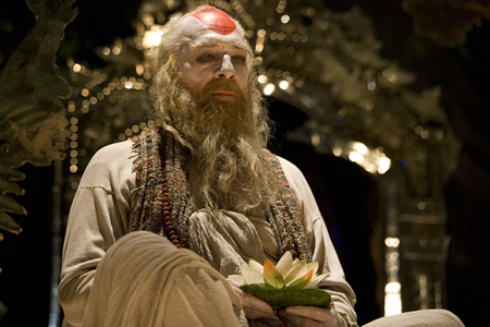 Пока доктор Парнас, раскладывая пасьянс из карт Таро, открывает Висельника (толкование этой карты, кстати, двояко: с одной стороны – самоотречение, жертва во имя, с другой – эгоизм, гордость, материальность), его дочка с помощниками снимают свежеповешенного горемыку с моста над Темзой. Повешенный (Хит Леджер, а затем – последовательно: Джонни Депп, Джуд Лоу и Коллин Фаррел) довольно быстро приходит в себя, симулирует амнезию, и активно берется вносить полезные и позитивные изменения в жизнь команды "Воображариума". Концепцию шоу меняет, денег зарабатывает и даже отправляется на выручку к Валентине, попавшей-таки в дьявольские лапы. Вот только зачем он все это делает?