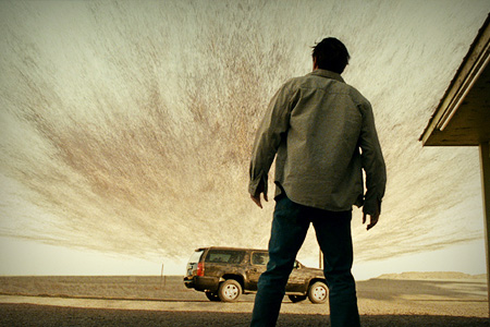 Апокалипсис в кино всегда был самой кассовой темой. Человеков методично "мочили" чуть ли не с самого начала кинематографа. В том числе, с помощью Господа Бога. С развитием современных технологий убивать людей на экране стало вдвойне приятней: теперь хруст костей звучит очень убедительно, а грим у зомби наложен таким образом, что начинаешь верить – точно зомби, а не актер дядя Вася, который будет долго материться, смывая с лица ошметки латекса. И компьютерная графика мгновенно превращает приличного, вроде бы, и совсем безопасного развозчика мороженого в жуткое паукообразное чудовище.