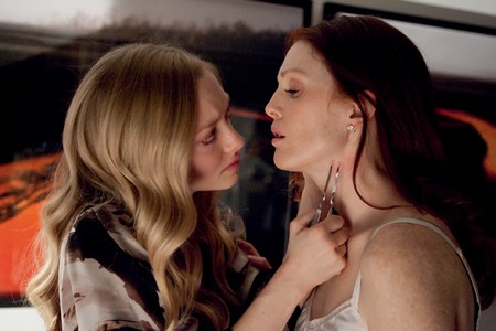 Собственно, об этом и новый фильм оскаровского номинанта Эгояна. Основой послужил французский фильм Энн Фонтен "Натали" с блистательными Депардье и Эммануэль Беар. История, казалось бы, довольно обыденная: уже немолодая замужняя женщина понимает, что, несмотря на то, что живет с мужем и сыном, она отчаянно одинока. Муж отдалился и слегка приударяет за студентками, сын стал взрослым, и кроме своей подружки, ничего не замечает. И вот, чтобы вернуть контроль над мужем, она нанимает проститутку, чтобы та соблазнила благоверного, а потом подробно докладывала, что и как между ними происходит. Вдруг, слушая рассказы, она понимает, что про мужа слушать ей как-то не очень интересно, а вот зато представлять, как это все проделывалось с жрицей любви, – очень даже. А еще лучше – заняться этим всем наяву, причем не с мужем, а с нанятым для его разоблачения работником. Над всем этим сидит дедушка Фрейд на облачке, смеется, как гиена, и радостно хлопает в ладоши.