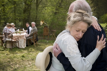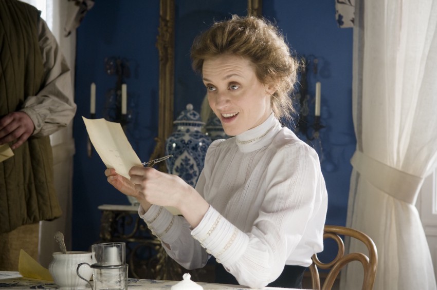 Проблема в другом. Главным минусом фильма, как это ни парадоксально, является его главный плюс – Хелен Миррен. Елена Васильевна устроила из фильма свой бенефис, перетянув одеяло на себя практически целиком. Знаете, вот так бывает, что яркая игра одного актера вредит всему фильму целиком, потому что другие персонажи смотрятся бледно и не могут по-настоящему раскрыться. Но это вина не Миррен, а скорее режиссера, который не смог наиболее удачно скомпоновать повествование, чтобы экранного одеяла хватило всем. Несмотря на то, что по сюжету вроде как предполагалось на первый план вывести Булгакова и его отношений с девушкой из секты толстовцев и мемуарами писателя, на первом плане всегда оказывается жена Толстого. Софья Андреевна в исполнении Хелен Миррен – настоящий демон в юбке, она бьет посуду, устраивает истерики и картинно топится в пруду, отравляя последние дни ее великого мужа. Но при этом она его, конечно, любит, просто она – натура страстная и живая, полная противоположность своему умиротворенному мужу.