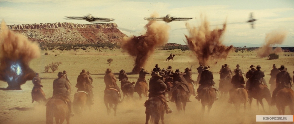 Режиссер фильма Джон Фавро вообще-то специализируется на сериалах ("Мой друг Эрл") фантастическом полутреше ("Железный человек") и слегка плосковатых комедиях ("Эльф"). Однако в своем новом творении он превзошел сам себя – собрав в одну кучу кошмарных монстров-людоедов, ковбоев, индейцев и сюжетные перипетии, сходные с творениями Жюля Верна, он замесил такую кулебяку, что просто страшно смотреть! Причем, смотреть вдвойне страшно: во-первых, из-за чудовищного сюжета (см. выше), а во-вторых, из-за крайне реалистичного подхода к съемкам. Потому что и скачущие по прериям ковбои, и брезгливые индейцы, и высокоразвитые (вот бред-то!) инопланетяне-людоеды, сражающиеся с мерзкими людишками исключительно с помощью собственных зубов и когтей выглядят очень и очень натурально. Иногда настолько натурально, что натурально хочется спрятаться под креслом. По сути, "Ковбои против пришельцев" – это такая "бродилка-стрелялка" нового поколения с возможным развитием в качестве уже компьютерной игры. Что касается фильма, то здесь "в войнушку" играют актеры и предлагают (по возможности) присоединиться зрителям.