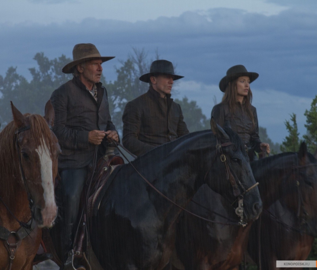 В этом смысле отлично поработали Дэниэл Крейг и Хариссон Форд - совершенно невозмутимо, как будто договорившись о новой игре, эти двое самозабвенно мочат инопланетных гадов. И, как обычно, выглядят настоящими крутыми мужиками. Впрочем, больше от них ничего и не требуется! Красавица Оливия Уайлд тоже выполняет все условия контракта – то есть прекрасно смотрится рядом с крутыми мужиками, регулярно моет голову. И (когда никто не видит), достает из кобуры косметичку.