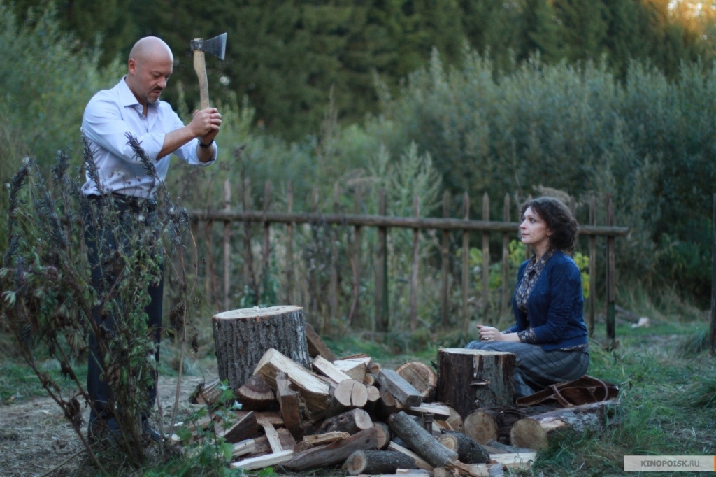Чудо-мужчина с упоением колет дрова для возлюбленной, которая орет, что не собирается становиться губернаторшей. Каждому – свое.