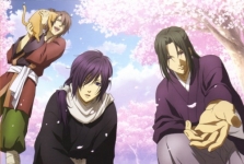 Жду выхода четвертой из пяти серий овашек Hakuouki Sekkaroku - Сказание о демонах сакуры. Сюжет там вообще не играет никакой роли. В принципе. Никогда. Там просто видеоряд настолько захватывающий, что я могу смотреть это бесконечно. У меня даже пейзажные скрины из первого сезона стояли, как обои, на рабочем столе. Ну, и плюс там милые мальчики на любой вкус и цвет. Особенно цвет. Вот они вам в движении: