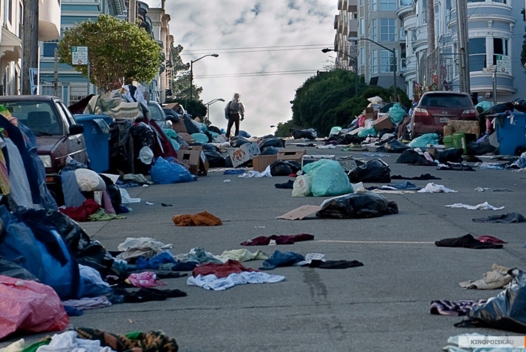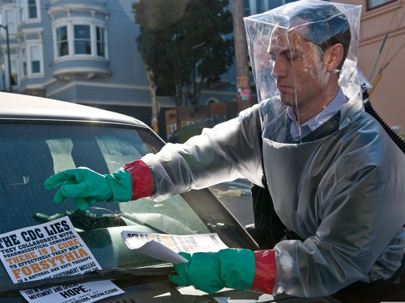 Научной подкованности сценариста Скотта Бернса надо отдать должное – он описали то, чего так боялись в ВОЗ: после неудачной встречи летучей мыши со свиньей вирус мутировал. Эпидемия столь стремительна, что через месяц на захламленных улицах и в опустевших домах свирепствуют мародеры, в аптеках творится паника, продуктовые магазины разграблены. "Заражение" стилизовано под документальный фильм, апокалипсис расписан по дням. В штабе ВОЗ высокопоставленные чиновники хмуро наблюдают карту мира, покрывающуюся сплошь красными точками новых очагов. А в лабораториях сосредоточенно перекладывают пробирки в тщетных попытках изобрести вакцину. Однако, несмотря на грозные сообщения о десятках миллионов жертв, фильм абсолютно лишен драматизма – масштаб трагедии, который должен сокрушать, остался где-то за кадром.