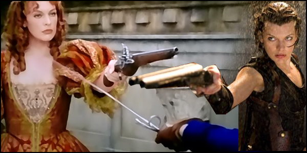 Прошу прощения, но далее я не мог следить за нитью повествования и вникать в диалоги, сгорели предохранители и мозг не спасли. Что-то происходило, интриговали, бегали, стреляли пушкометом, летали мушкетеры и летали кареты, миледи летала, тут вообще летать любят, были "Обитель зла", "Друзья Оушена", "Матрица" целой сценой ("Он не допрыгнет!") и снова "Обитель зла". Я уверен, что на домашней записи свадьбы Милы Йовович и Пола Андерсена невеста в мини-юбке, вооруженная и опасная, скачет по столам исключительно в замедленной съемке.