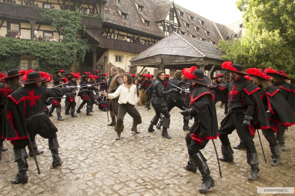 Дуэль. Не во внутреннем дворе монастыря, на рыночной площади, не суть важно, но, положив руку на сердце, скажу – драка удалась, не отнять. Почти никакого ниндзюцу, прыжков выше головы и кривляний, все как положено и достаточно средневеково: юношеский выпендреж Д’Артаньяна, артистизм и притворная набожность Арамиса, скупость движений и расчет Атоса и "к черту шпагу, дайте дрын" Портоса. Мелькает Констанция, но она так далека от нашей несравненной Ирины Алферовой, в которую была влюблена вся страна обоих полов и за которую трудоспособная половина страны лично бы поехала в Англию и порвала бы всех препятствующих на флаг вышеупомянутой державы, наплевав и на монархов и на, собственно, подвески, стоило только попросить. Местная вертихвостка настолько искусственна, отмочена на пляжах Малибу и невыразительна, что никак не приковывает внимания и не откладывается в памяти. Да что там - советская Миледи (Маргарита Терехова), в виде врага, лично меня пугает гораздо больше, чем вооруженная до зубов Мила, "нашу" сам домой пригласишь, накормишь, напоешь, она тебе нож в спине будет поворачивать, а ты всё равно будешь счастливо улыбаться…Эх, роковая женщина, суккуб прям…прощаю убийство Бонасье.