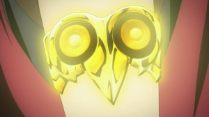 Но так как наша история про супербитву с супермозгом, Кайто отхватил себе в нелегкой борьбе подтверждение своей мозговой гениальности. А еще получил странный контракт Орфея, который дал ему неплохой бонус – устройство Фи Брейн, которое позволяет использовать мозг на полную - на все 100%. Правда, непонятно – если главный герой и так самый умный, зачем ему искусственные прилады? Надеюсь, что ближе к середине сезона необходимость этой могучей штуки станет более очевидна. Вот так он выглядит